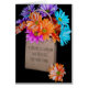 Bouquet de marguerite coloré dans un sac brun clair sur noir avec une citation d'amitié
