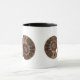 Photographie de fossiles d'ammonite sur couleur arrière - plan personnalisable. Image des deux côtés de la tasse.