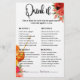 "Love at First Spritz" Boire Si Fête des mariées Jeu | Fun Citrus Party Icebreaker Levez un verre et préparez-vous à rire avec notre délicieux "Love at First Spritz" Drink If Fête des mariées Game! Cette charmante carte de jeu complète parfaitement votre thème "L'amour au premier Spritz", avec des oranges d'agrumes vibrantes, une verdure fraîche et des éléments botaniques luxuriants. C'est l'activité interactive idéale pour faire siroter, rire et partager des faits amusants sur soi ! Ce jeu de douche nuptiale "Drink If" est conçu pour être un brise-glace fantastique et une activité de mélange. Les cravates de design d'agrumes joyeux dans magnifiquement avec votre douche globale esthétique, créant une sensation de cohésion et d'invitation pour votre célébration. Les clients aimeront lire les invites (par exemple, "Buvez si vous connaissez la mariée depuis plus de 5 ans", "Buvez si vous portez des talons", "Buvez si vous êtes marié"), prendre un verre si la déclaration s'applique à eux, et découvrir des liens surprenants avec d'autres participants. C'est une façon fantastique d'encourager l'interaction et une activité mémorable pour tous. Customisez facilement ce jeu de douche nuptiale en ajoutant le nom de la mariée ou un message personnalisé. La carte de jeu est livrée avec une liste pré-établie de invites attrayantes. Vous pouvez personnaliser les polices, les couleurs et l'agencement de votre douche pour qu'ils correspondent parfaitement au thème et à la palette de couleurs uniques de votre douche. Choisissez parmi la variété de papier de haute qualité de Zazzle pour une sensation de qualité supérieure. Coordonnez ces belles cartes "Love at First Spritz" Drink If Fête des mariées Game avec vos invitations, signe de bienvenue, et autres papeterie de fête pour une célébration parfaitement cohésive et mémorable pour les futurs mariés. Cliquez sur "Customiser maintenant" pour personnaliser votre "Aimer au premier Spritz" Boire Si Fête des mariées Jeu et ajouter une petite partie de plaisir et de connexion à votre douche nuptiale! Aimer au premier spritz boisson si jeu, citrus douche nuptiale jeu, boire si wedding shower, orange activité douche nuptiale, amusant brise-glace nuptiale, boisson personnalisée si jeu, botanique douche nuptiale jeu, citrus jeu de wedding shower, jeu de fête personnalisé, jeu de jumelage de douche nuptiale