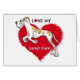 Faites savoir à chacun que vous AIMEZ votre Grande Danse (oreilles non rognées) avec ce grand coeur rouge et la grue à sauter avec le texte "I Love My Great Dane" de Danes-R-Us.
