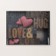 les mots aiment embrasser heureux dans vieux bois et le type métal avec le coeur rose
