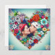 Amour | Coeur Turquoise et rouge floral avec la ph