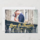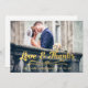 CARTE DE REMERCIEMENTS DE MARIAGE DE TYPOGRAPHIE D'AMOUR ET DE MERCIS AVEC L'EFFET DE PHOTO IMPRIMÉ PAR FEUILLE D'OR DE LA PHOTO %PIPE%. Conception d'Elke Clarke© disponible chez www.zazzle.com/monogramgallery. Envoyez votre mariage vous remercient message comme l'épouse nouvellement à vos amis et la famille utilisant ce rétro, merci carte photo de mariage avec les mots "amour et mercis" écrits dans un recouvrement audacieux des textes de manuscrit de typographie d'écriture de feuille d'or (effet imprimé de photo). Remplacez la photo témoin par vos propres. Ajoutez votre personnel vous remercient message sur le dos ou laissent le blanc et la main écrivent votre message en personne. Autre colore disponible.