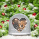 Ce globe de neige élégant présente la photo de votre couple préféré encadrée à l'intérieur d'un cœur argenté découpé avec "Amour" en gracieuse écriture blanche. Le dos affiche une deuxième photo pour un souvenir sophistiqué à deux faces. Un cadeau raffiné pour la Saint-Valentin, un mémento d'anniversaire de mariage ou un souvenir romantique élégant avec une brillance métallique cool. Tous les textes et photos sont entièrement personnalisables.