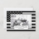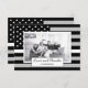 Merci à votre famille et à votre ami pour l'occasion qu'il vous offre avec l'un de nos cartes photos personnalisés. Cette conception présente un drapeau américain en noir, gris et blanc EMS premier répondeur mince ligne blanche et blanc pour décorer autour de votre image. Sous votre photo se trouve une zone en blanc pour le sentiment qui dit "Amour et Merci" et votre nom de famille ci-dessous qui peut être personnalisé dans la typographie écrite à la main noire. Le dos de la carte a aussi la fine ligne blanche EMS drapeau américain Remplacez la photo montrée par la vôtre pour une salutation aimable que votre famille et vos amis aimeront! Conçu par l'artiste ©Tim Coffey. Photographie © Storytree Studios, Stanford, CA.