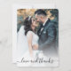 Un design simple et moderne à 2 photos pour dire merci à tous ceux qui ont envoyé leurs félicitations et assisté à la cérémonie de mariage. L'élégante conception de mariée et mariée pour jeunes mariés est également formidable pour remercier ceux qui ont envoyé leurs félicitations mais n'ont pas pu y assister. Le message texte de typographie est personnalisable et peut être modifié pour convenir au destinataire. Vous pouvez modifier la police, la couleur de police, la taille de police. Couleur arrière - plan et repositionner le texte à l'aide de l'outil de conception. Le design d'appréciation spécial pour montrer votre amour et merci est à vous de customiser et de personnaliser comme vous le souhaitez. Remplacez les images par une image verticale et horizontale du couple marié.