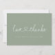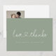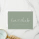 Express gratitude dans l'élégance moderne avec ce Carte de remerciements Mariage Love & Thanks Sage Green. Doté d'un arrière - plan sage apaisant, d'un script blanc chic et d'un détail de coeur, ce design allie simplicité et romantisme. Personnalisez avec vos noms, date mariage et message pour créer un souvenir intemporel qui reflète votre journée spéciale. Ce style polyvalent se marie magnifiquement avec des mariages rustiques, boho ou modernes, ce qui en fait un lieu de prédilection pour les couples qui aiment le design minimaliste. Envoyez à votre famille, à vos amis et à vos invités un témoignage d'appréciation durable qui sera apprécié pendant des années.