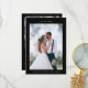 Carte de remerciements mariage simple et minimaliste avec votre photo de mariage avec un cadre blanc avec des textes autour qui dit "Amour et Merci" et les noms du couple et la date du mariage. Le message au verso de la carte est modifiable et une autre image peut être ajoutée. Cette carte de remerciements à deux côtés est si intemporelle. L'arrière - plan est noir.