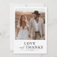 Express votre profonde gratitude d'une manière merveilleusement rustique avec ces cartes de remerciement photo boho-chic. Doté d'une écriture douce et manuscrite superposant une photo en noir et blanc, ce design est parfait pour capturer l'élégance naturelle de votre célébration mariage. Laissez votre photo mariage préférée regarder à travers le message de "Amour & Merci" pour une touche vraiment personnelle.