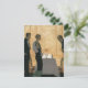 Image d'illustration vintage d'amour et de romance représentant un homme et une femme en rendez-vous romantique en train de manger dans un restaurant chic. Ils sont sur le point d'être installés à leur table par le maître d'hôtel ou serveur.
