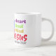 Jumbo Certains jours, une tasse de joe de taille régulière ne le fera pas. Quand vous avez besoin d'une dose de caféine en plus, utilisez votre tasse XL de Zazzle. Peut contenir jusqu'à 591 ml. Idéal pour des soupes, céréales, glaces et du chili aussi ! Cette tasse géante à une anse en forme de C pour une utilisation confortable. Dimensions : Hauteur : 4,5" Diamètre : 3,9" Capacité : 20 onces Micro-ondes et lave-vaisselle sans danger Construction céramique forte Satisfait ou dépasse les exigences de la FDA en matière de salubrité des aliments et des boissons Conseil du concepteur : Pour assurer l’impression de haute qualité, veuillez noter que l’aire de conception personnalisable de ce produit mesure 4" de haut x 10,5" de large