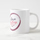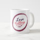 Jumbo Certains jours, une tasse de joe de taille régulière ne le fera pas. Quand vous avez besoin d'une dose de caféine en plus, utilisez votre tasse XL de Zazzle. Peut contenir jusqu'à 591 ml. Idéal pour des soupes, céréales, glaces et du chili aussi ! Cette tasse géante à une anse en forme de C pour une utilisation confortable. Dimensions : Hauteur : 4,5" Diamètre : 3,9" Capacité : 20 onces Micro-ondes et lave-vaisselle sans danger Construction céramique forte Satisfait ou dépasse les exigences de la FDA en matière de salubrité des aliments et des boissons Conseil du concepteur : Pour assurer l’impression de haute qualité, veuillez noter que l’aire de conception personnalisable de ce produit mesure 4" de haut x 10,5" de large