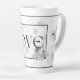 Mug en latte 'Love' dans un design floral noir et blanc.
