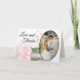 Merci à vos invités mariages avec cette belle et romantique carte pliée. Il présente un joli design avec votre photo mariage dans un cadre en forme ovale, et un seul rose à long tige rose pâle pâle reflétant dans un bassin d'eau. La légende dit "Amour et Merci" et il y a des coeurs mignons éparpillés. À l'intérieur, vous trouverez de l'espace pour la signature et la note personnalisée, avec beaucoup d'espace pour écrire votre propre message personnalisé à chaque invité.