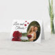 Merci à vos invités mariages avec cette belle et romantique carte pliée. Il présente un joli design avec votre photo mariage dans un cadre ovale, et une seule rose rouge à long tige réfléchissant dans un bassin d'eau. La légende dit "Amour et Merci" et il y a des coeurs mignons éparpillés. À l'intérieur, vous trouverez de l'espace pour la signature et la note personnalisée, avec beaucoup d'espace pour écrire votre propre message personnalisé à chaque invité.