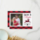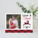 Remerciez votre famille et vos amis pendant cette période des fêtes avec l'une de nos cartes photo personnalisées. Ce modèle rustique présente votre propre photo à gauche et les mots "Amour et Remerciements". Sous le sentiment, se trouve un renne élégant à carreaux rouges et noirs avec votre nom en dessous, une flèche avec un cœur et l'année que vous pouvez personnaliser. Veuillez changer la photo pour une carte personnalisée que votre famille et vos amis adoreront. Conçu par l'artiste © Susan Coffey. Photographie © Storytree Studios, Stanford, CA.