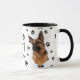 Cette tasse pour le propriétaire allemand du berger comporte un beau portrait d'un berger allemand. L'image est imprimée deux fois, et entre eux est un ovale avec le texte noir qui dit "Aimez mon GSD". Les images ovales et de chien sont placées sur un arrière - plan parsemé d'empreintes de pattes noirs. Vous pouvez facilement changer le texte en autre chose, ou le personnaliser, si vous le souhaitez.