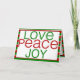 amour, paix, joie avec une frontière rayée rouge, verte et blanche. à l'intérieur de la carte peut être customisé avec votre propre texte.