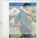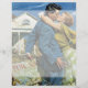 Illustration vintage image d'amour et de romance montrant un jeune couple s'embrasser. Un baiser pour sceller l'affaire et célébrer l'achat de leur nouvelle maison. Un petit fixeur en haut. Super cadeau de ménage!