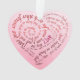 Un ornement souvenir pour les mariages, les fiançailles ou les anniversaires, présentant un design de calligraphie romantique qui s'enroule en forme de cœur, entièrement réalisé à partir d'un vœu poétique entre amants. Les lettres se déploient dans des tons chauds de bordeaux et de rose sur un dégradé rose doux, créant un visuel saisissant avec une profondeur émotionnelle intemporelle. Personnalisé avec les noms des conjoints et la date, cet ornement chargé de sens est idéal pour être offert lors d'une fête de mariage ou pour être exposé tout au long de l'année en tant que symbole de votre promesse mutuelle.