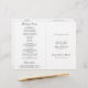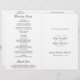 Élégant programme de mariage plié en noir et blanc (imprimé sur papier qui se déplie) avec un design simple et minimal avec une grande carte derrière les noms de la mariée et du marié sur le devant. L'intérieur comprend un libellé traditionnel pour un mariage catholique, mais le libellé peut être mis à jour pour un mariage non catholique. Un choix classique qui conviendra parfaitement à un mariage formel.