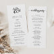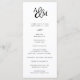 Un programme de mariage simple en noir et blanc présente les détails de votre cérémonie, surmonté d'un monogramme avec vos initiales et un script de calligraphie. Reverse side liste les membres de votre mariage avec des champs de texte facilement modifiables. Coordonnée avec notre collection de faire-part de mariage Ampersand Monogram. Utilisez les champs modèle pour ajouter les informations de cérémonie et de fête de mariage, puis cliquez sur "Personnaliser" pour repositionner les éléments si nécessaire.