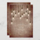Lumières Edison vintage suspendues du haut sur fond de brique rustique altéré. Invitation de fête polyvalente adaptée pour un anniversaire, un mariage, une journée portes ouvertes, une pendaison de crémaillère, un professionnel, une inauguration, un anniversaire de mariage, un dîner, etc.