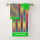 Ce design amusant et dynamique apportera une énergie jeune à toute salle de bain. Les bordures pour la serviette de bain et la serviette de bain, et l'arrière - plan pour le linge de toilette, sont montrées ici dans un vert citron clair mais vous pouvez les changer à toutes les couleurs que vous voulez. Vous pouvez également changer toutes les bandes blanches de cette conception en n'importe quelle autre couleur. Essayez le noir pour un look totalement différent. Cliquez sur Personnaliser, puis la grande boîte bleue à "Modifier en utilisant l'outil de conception" et amusez-vous à customiser ce design à votre style.
