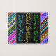 Ce puzzle amusant, coloré et fantaisiste à thème d'anniversaire présente un voeu d'anniversaire chaleureux comme "Ayez un grand 22e anniversaire, Custom-Name!". Le nom peut être customisé. Le haut et le bas présentent des bandes multicolores vibrantes. Un casse-tête comme celui-ci pourrait être une façon amusante d'offrir des voeux d'anniversaire à quelqu'un qui célèbre son vingt-deuxième anniversaire. [~Z0000268]