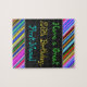 Ce puzzle amusant, coloré et fantaisiste à thème d'anniversaire présente un voeu d'anniversaire chaleureux comme "Ayez un grand 26e anniversaire, prénom!". Le nom peut être customisé. Il y a aussi des bandes multicolores en haut et en bas. Un casse-tête comme celui-ci pourrait être une façon amusante d'offrir des voeux d'anniversaire à quelqu'un qui célèbre son vingt-sixième anniversaire. [~Z0000268]