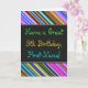Cette carte de voeux amusante, colorée et fantaisiste à thème d'anniversaire présente un voeu d'anniversaire chaleureux comme "Ayez un grand 9e anniversaire, prénom!" sur le devant. Le nom sur le devant peut être personnalisé. Le haut et le bas de l'avant sont dotés d'un motif rayé multicolore et dynamique. L'intérieur comporte un message d'anniversaire qui peut être customisé. Une carte de voeux comme celle-ci pourrait être une façon amusante d'offrir des voeux d'anniversaire à quelqu'un qui célèbre son neuvième anniversaire. [~Z0000269]