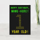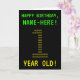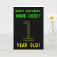 Le recto de cette carte d'anniversaire nerdy et personnalisée comprend les messages "HAPPY BANTHDAY" et "1 AN old!", ainsi qu'un nom de destinataire personnalisé. Les messages sur le devant ont un look inspiré par les jeux vidéo rétro pixélisés. Le numéro "1" sur le devant se compose de "1" chiffres de taille plus petite, donnant un look inspiré de l'art ASCII. L'intérieur comporte un message d'anniversaire modifiable. Un style geek, une carte de voeux d'anniversaire personnalisable comme celle-ci pourrait être donnée à quelqu'un qui célèbre son 1er anniversaire. [~Z0000366]