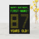 Le recto de cette carte d'anniversaire nerveux et personnalisée comprend les messages "HAPPY BANTHDAY" et "87 ANS !", ainsi qu'un nom de destinataire personnalisé. Les messages sur le devant ont un look pixelisé, vintage jeu d'ordinateur. Les chiffres du grand numéro "87" sur le devant se composent de petits chiffres "8" ou "7", donnant un look inspiré de l'art ASCII. L'intérieur comporte un message de bienvenue d'anniversaire qui peut être modifié. Un style geek, une carte de voeux d’anniversaire personnalisable comme celle-ci pourrait être donnée pour commémorer le 87e anniversaire de quelqu’un. [~Z0000366]