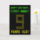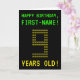 Le recto de cette carte d'anniversaire nerdy et modifiable comporte les messages "HAPPY BANTHDAY" et "9 ANS !", ainsi qu'un nom de destinataire personnalisable. Les messages sur le devant ont une apparence inspirée par les jeux vidéo classiques pixélisés. Le numéro "9" sur le devant est lui-même composé de petits "9" chiffres, donnant un look inspiré de l'art ASCII. L'intérieur est doté d'un message d'anniversaire qui peut être personnalisé. Un style geek, une carte de voeux d'anniversaire personnalisée comme celle-ci pourrait être un moyen spécial d'envoyer des voeux d'anniversaire à quelqu'un qui célèbre son neuvième anniversaire. [~Z0000366]