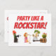 Carte d'anniversaire de nourriture amusante jeu de jeu drôle vege carte postale. Cette carte d'anniversaire amusante et décalée comprend un groupe de légumes hilarant qui fera sourire n'importe qui. Avec une serviette punky sur le clavier, une pomme de terre bouclée sur les tambours, une petite chaux cool qui balaie la guitare, et une pomme de terre aux cheveux orangés fantaisie sur les voix, cette carte présente le groupe le plus fou, le plus cool et le plus amusant de tous les temps ! Idéal pour les amateurs de musique et ceux qui ont un sentiment d'humour, cette carte ajoute un niveau supplémentaire de plaisir à toute célébration d'anniversaire. Les personnages ludiques associés au message audacieux "Party Like a Rockstar" en font un choix de carte unique pour toute rockstar de votre vie. Bon appétit !