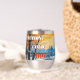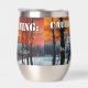 Bonnet isolé avec vos textes amusants sur une peinture de paysage d'hiver d'art. Les couleurs rendent ce tumbler très agréable pour utiliser des blagues chaudes et froides. Un grand cadeau personnalisé, par exemple pour un mari pour Noël ou son anniversaire.