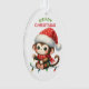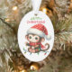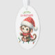 C'est un joli ornement de Noël que les parents ou grands-parents peuvent donner à un enfant. Le devant de l'ornement a l'image d'un drôle de singe de bande dessinée portant un chapeau de Père Noël flocon de neige et foulard. Il a grimpé sur un chapelet de lumières colorées des Fêtes. Le texte vert et rouge dit "MERCI NOËL". L'arrière de l'ornement a votre texte personnalisé qui est séparé par un petit sucre de canne et un bouquet saint. Modifiez facilement le texte à tout ce que vous voulez!