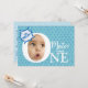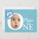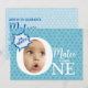 Carte modèle d'invitation pour fêtes d'anniversaire amusante avec un ballon de mots comiques et des étoiles bleues simples. Pas besoin de couper la photo en cercle. Vous ne remplacez votre photo de bébé que par un exemple. C'est parfait pour une fête d'anniversaire pour bébé garçon et ravira votre famille et vos amis. S'il vous plaît glissez dans une petite boule d'humour dans la bulle de la parole !