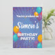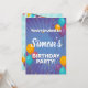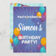 Invitation de fête d'anniversaire de ballon amusante avec des serpentins, des confettis et des ballons. Rempli de couleurs amusantes de turquoise, orange, rouge et violet, ce qui le rend parfait pour n'importe quel genre.