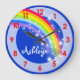 Amusants enfants Rainbow nom bleu mur horloge