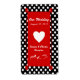 Étiquettes élégants de mini bouteille de vin fait en noir avec motif à pois blanc. Une zone de texte encadrée rouge, au milieu, a un coeur blanc et un blanc fleuri la décorer. Tout le texte blanc est prêt à être personnalisé pour votre jour de mariage. Idéal pour les bouteilles individuelles de vin ou de champagne en guise de faveurs pour les clients mariages. Parfait dans chaque cadre pour le toast au champagne.