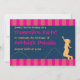 Une invitation très amusante à la soirée trampoline colorée qui a une silhouette d'une fille sautant dans l'air pour le bonheur et la joie de l'express. L'invitation a des rayures et les couleurs sont bleu, rose et jaune. Idéal pour les enfants et les adolescents !
