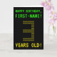 L'avant de ce design de carte ringard et personnalisé d'anniversaire "JOYEUX ANNIVERSAIRE" comporte messages et "3 ANNÉES ! ", avec un nom réceptif editable. Les messages sur l'avant ont un aspect inspiré par le cru pixelated/jeux vidéo classiques/rétros. Le nombre "3" sur l'avant lui-même se compose de plus petit "3" classé des chiffres, donnant un regard inspiré par art d'ASCII. Les caractéristiques intérieures un message de salutation d'anniversaire qui peut être customisé. Un style geeky, carte de voeux personnalisée d'anniversaire comme ceci pourrait être donné à quelqu'un qui célèbre leur 3ème anniversaire. [~Z0000366]