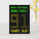L'avant de ce design de carte geeky et editable d'anniversaire "JOYEUX ANNIVERSAIRE" comporte messages et "91 ANNÉES ! ", avec un nom réceptif editable. Les messages sur l'avant ont un aspect inspiré par les jeux vidéo classiques pixelated. Les chiffres du grand nombre "91" sur l'avant se composent de plus petit "9" classé ou de "1" des chiffres, donnant un regard inspiré par art d'ASCII. Les caractéristiques intérieures un message de salutation d'anniversaire qui peut être customisé. Un style ringard, carte de voeux customisée d'anniversaire comme ceci pourrait être une manière idiote d'envoyer un anniversaire saluant à quelqu'un célébrant leur quatre-vingt-onzième anniversaire. [~Z0000366]