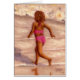 Jeune fille dans le costume de bain rose fonctionnant par le surf.