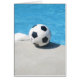carte vierge avec la photo du ballon de football par la piscine