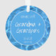 Créez votre propre ornement photo de famille pour grand-mère et grand-père. L'image de l'arrière - plan est une photo de piscine bleu aqua pour la couleur. L'échantillon de la photo de famille... deux petits-enfants en visite chez leurs grands-parents. Les cousins s'amusent à la piscine extérieure du parc. Vous pouvez customiser le texte au verso pour votre situation.