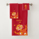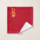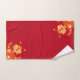 Ensemble de serviette de salle de bains d'amusement personnalisé par robot de rouge orange d'enfants. La lavette, la serviette de main, et la serviette toutes de corps ont des milieux rouge foncé avec les robots fous oranges lumineux faisant une pointe des coins. Personnalisez avec le nom sur la serviette de corps. Conception orientée de robot de la science-fiction pour des enfants. www.SamAnnDesigns.com
