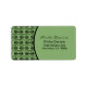 Funky chic Ancient Arches Étiquette de adresse en vert. Ce design élégant serait parfait pour quelqu'un dans un domaine créatif comme le graphisme ou le web design. Facile à customiser, il suffit d'ajouter vos informations d'affaires dans les champs fournis. Changez les polices et les couleurs de texte pour personnaliser encore plus ce design !
