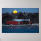 Ancien pavillon en bois rouge avec décor de pleine lune sur la mer Baltique arrière - plan et glacée au premier plan à Lauttarsaari, affiche d'Helsinki.